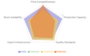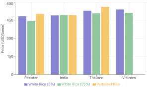 - Pakistan leading with most competitive pricing at $481-485/tonne for 5% broken white rice