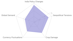 The global rice market is currently characterized by increased competition and lower prices following India's policy changes. However, geopolitical tensions and potential crop damage introduce significant uncertainties. With only a fraction of global rice production traded internationally, these factors could lead to heightened market volatility. Stakeholders should remain vigilant, closely monitoring production assessments, currency fluctuations, and trade policies in the coming weeks, as these will be crucial in shaping the market's direction.