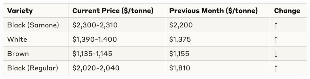 Current Myanmar sesame prices reflect varying trends across different varieties: