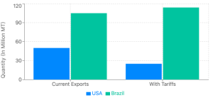 - Brazil could gain 8.9 million tonnes in annual soybean and corn exports